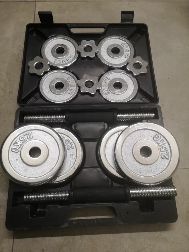 obciążenie w większości żeliwne o wadze 170kg +10kg sztanga